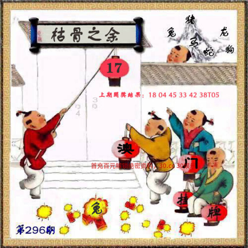 295期:复式连肖(龙蛇马猴兔虎鸡) 中3个